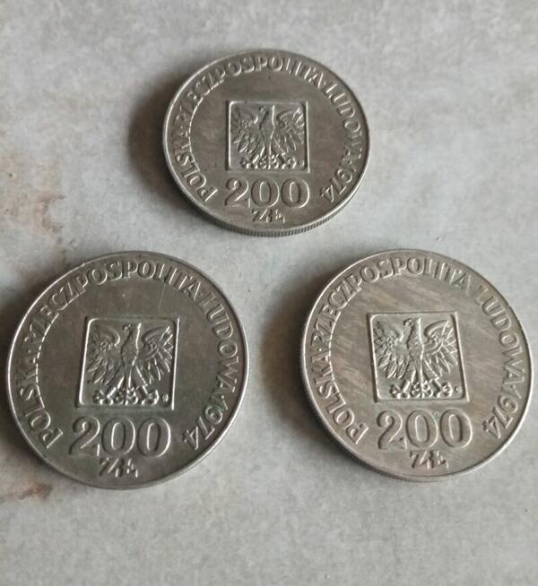 Sprzedam 3 srebrne monety 200zł. z czasów PRL monety zachowane w bardzo ładnym stanie. Podana cena za szt.